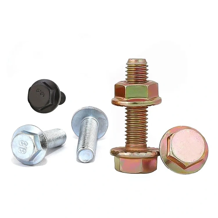 Нестандардни угљични челик, плаво-бијели поцинчани вијак са равном главом са шестоугаоним вратомДа ли желите да купите попуст и квалитетан вијак са прирубницом? Наши драги купци широм света, добродошли сте да то купите у нашој фабрици у Кини. Вијци са шестоугаоном главом са прирубницом су причвршћивачи високе чврстоће који комбинују шестоугаону главу са интегрисаном прирубницом. Њихов јединствени дизајн интегрише прирубницу и главу завртња у једну целину, елиминишући потребу за одвојеним подлошкама и обезбеђујући равномерну расподелу оптерећења, спречавајући лабављење и значајно побољшавајући заптивање и стабилност везе.