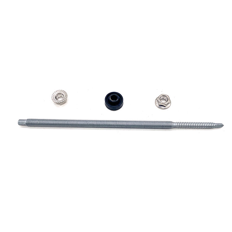 Нестандардни угљични челик, плаво-бијели поцинчани вијак са равном главом са шестоугаоним вратомКао професионални произвођач, желели бисмо да вам пружимо висококвалитетни М8Кс249 М10Кс200 угљенични челик Геомет самобушећи причврсни вијак за соларни носач.